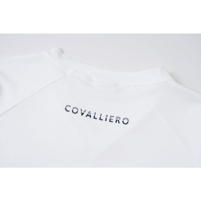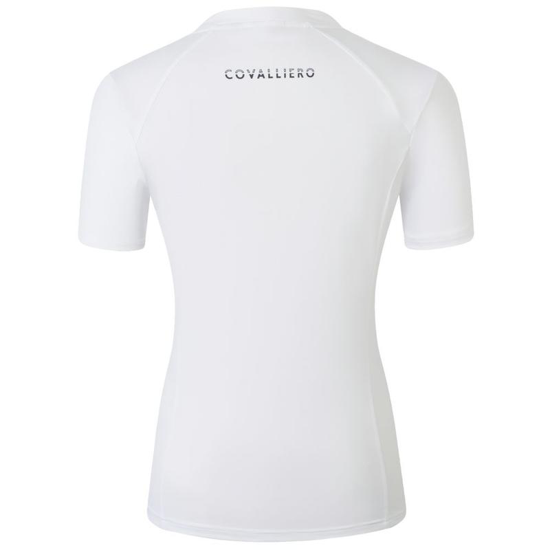 Elegancki T-shirt Covalliero z wycięciem w kształcie litery V zachwyca nie tylko atrakcyjnym wzornictwem, ale także wyjątkowym komfortem noszenia. Dzięki sportowemu materiałowi jest wyjątkowo przewiewny i stanowi idealne połączenie stylu i funkcjonalności podczas pracy w stajni. Miękki, oddychający i regulujący wilgoć materiał gwarantuje przyjemne uczucie noszenia. Niezależnie od tego, czy uprawiasz sport, spędzasz czas wolny, czy pracujesz w biurze, ten T-shirt zawsze zapewni Ci pierwszorzędną funkcjonalność.