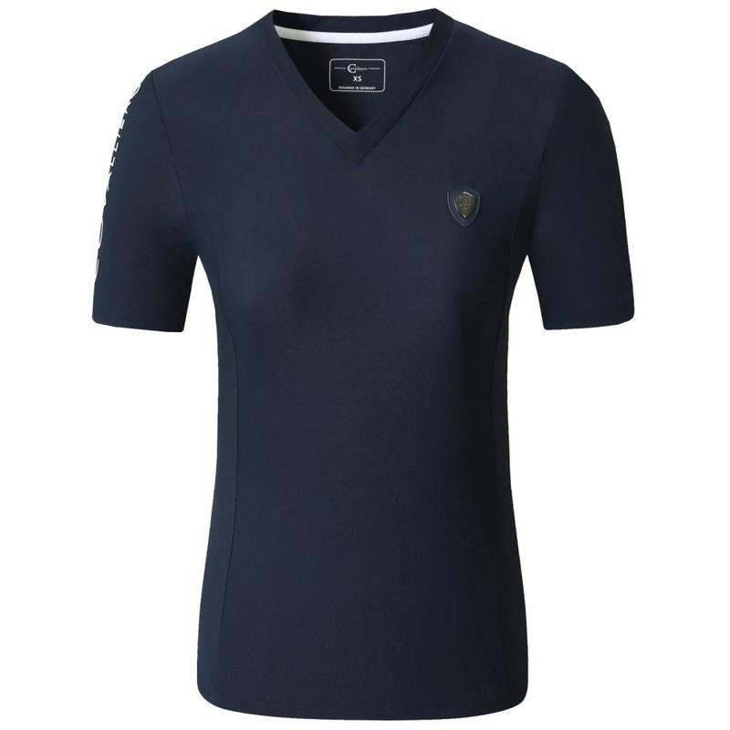 Koszulka damska firmy Covalliero. Koszulka Covalliero z wycięciem w kształcie litery V zachwyca nie tylko swoim wyglądem designem, ale także wysokim komfortem noszenia. Wykonana ze sportowego i oddychającego materiału. Kobiecy, taliowany krój. Można prać w pralce w temperaturze 30°C.