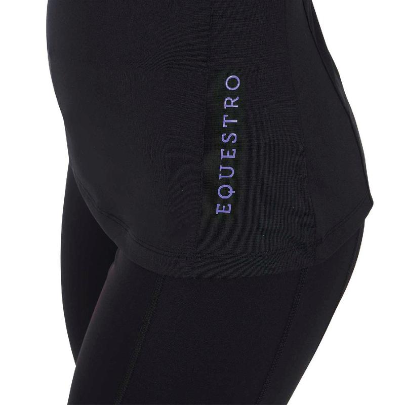 Koszulka damska Equestro Donna Black-Dahlia Purple, czarna z fioletowym logo