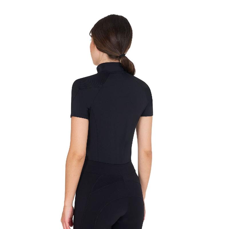 Koszulka konkursowa z półrękawem i zamkiem z przodu firmy Boos Equestrian. Zamek błyskawiczny ma nadrukowane subtelne, tonalne logo BOSS Equestrian. Na piersi znajduje się naszywka ze sztucznej skóry z logo BOSS. Materiał:78% POLIAMID / 22% ELASTAN.