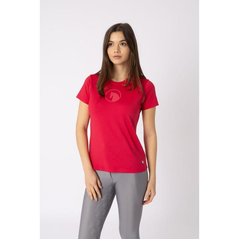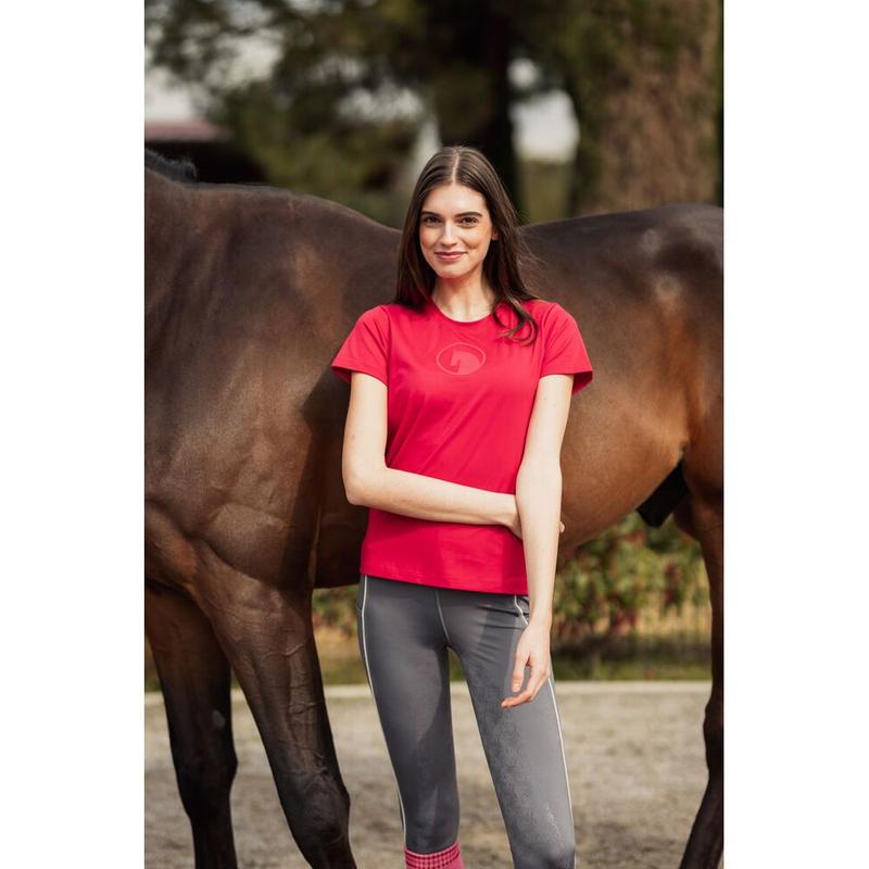 Koszulka damska firmy Pikeur z kolekcji wiosna-lato 2025.Posiada okrągły dekolt oraz dopasowany krój.Materiał:95% bawełna, 5% elastan.
