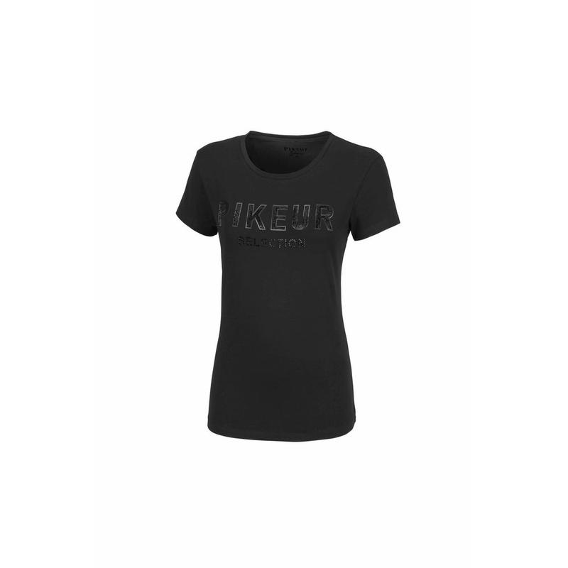 Koszulka damska polo firmy Pikeur z kolekcji wiosna-lato 2025.Wygodna, funkcjonalna tkanina. Dopasowany krój, dół koszulki lekko zaokrąglony, a dekold okrągly. Tkanina perforowana pod pachami oraz z tyłu, dzięki czemu zapewnia lepszą cyrkulację powietrza. Materiał: 70% poliester, 30% elastan.