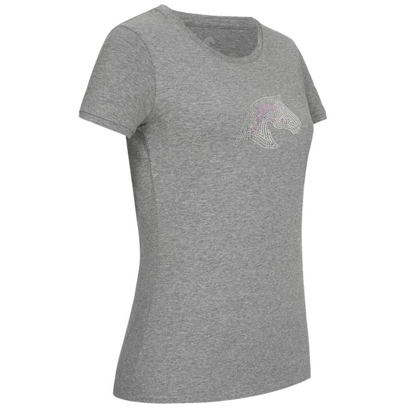Koszulka damska polo firmy Pikeur z kolekcji wiosna-lato 2025.Wygodna, funkcjonalna tkanina. Dopasowany krój, dół koszulki lekko zaokrąglony, a dekold okrągly. Tkanina perforowana pod pachami oraz z tyłu, dzięki czemu zapewnia lepszą cyrkulację powietrza. Materiał: 70% poliester, 30% elastan.