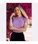 Top Anky wykonany z oddychającej prążkowanej tkaniny. Kryształki na lewej przedniej części bluzki. Rozmieszczenie prążków w różnych kierunkachMateriały: 75% nylonu, 25% spandexu.