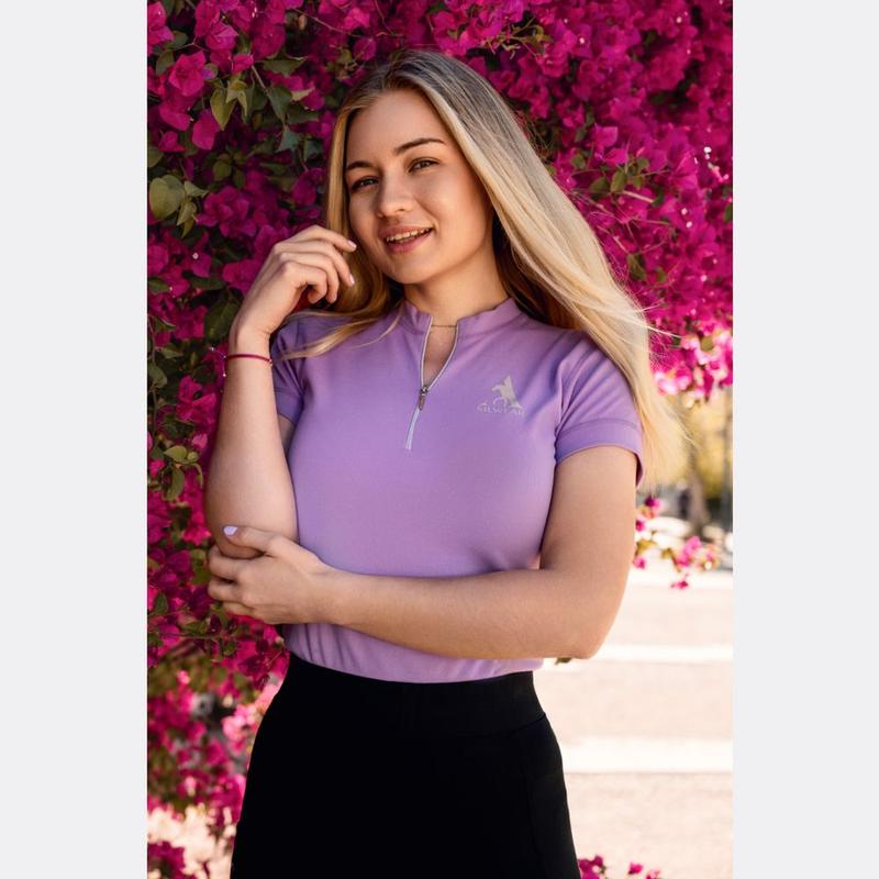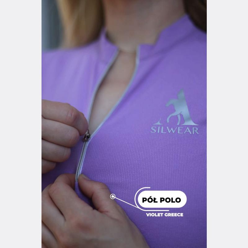 Koszulka firmy QHP. Wyposażona w brokatową obwódkę na wysokości klatki piersiowej. Zapinana na zamek błyskawiczny 1/4 w kolorze srebrnym z szpilką. Ozdobiona na lewej piersi szpilką Q-pin. Skład materiału: 91% poliester, 9% elastanMożna prać w pralce w temperaturze 30 stopni. Najlepiej nie używać płynu do zmiękczania tkanin i nie suszyć w suszarce bębnowej.