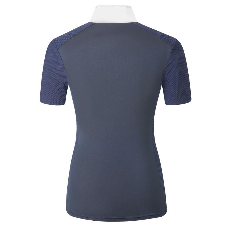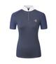 Nasza koszulka konkursowa łączy w sobie sportowe osiągi ze stylowym wzornictwem. Oddychający, elastyczny materiał zapewnia optymalny komfort noszenia i maksymalną swobodę ruchów w siodle. Dopasowany krój podkreśla sylwetkę, a elegancka stójka z dyskretnymi brokatowymi aplikacjami dodaje jej uroku. Stójka z zamkiem błyskawicznym