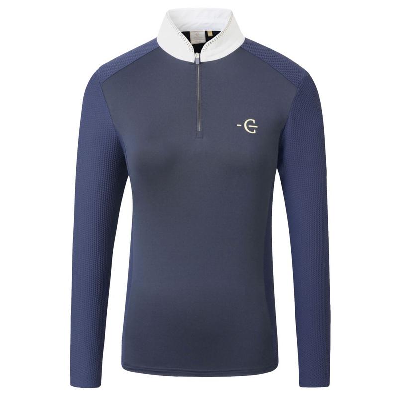 Nasza koszulka konkursowa łączy w sobie sportowe osiągi ze stylowym wzornictwem. Oddychający, elastyczny materiał zapewnia optymalny komfort noszenia i maksymalną swobodę ruchów w siodle. Dopasowany krój podkreśla sylwetkę, a elegancka stójka z dyskretnymi brokatowymi aplikacjami dodaje jej uroku. Stójka z zamkiem błyskawicznym