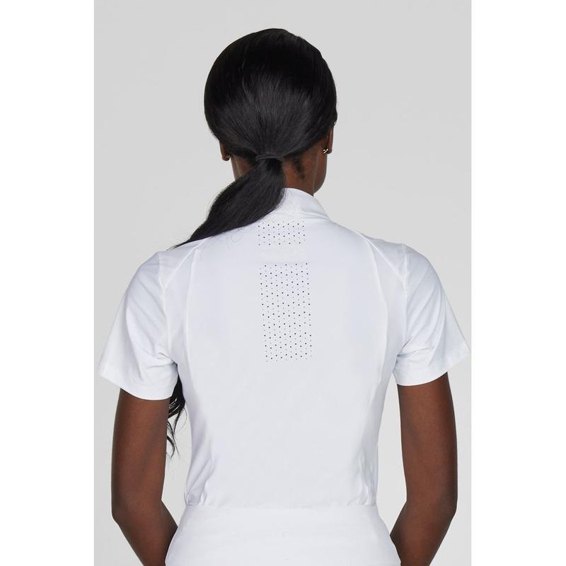 Koszulka konkursowa firmy Pikeur z kolekcji wiosna-lato 2026. Funkcjonalna koszula konkursowa wykonana z gładkiego, elastycznego materiału. Ukryty zamek błyskawiczny obok wstawki ze szklanych koralików . Laserowe cięcia na przednim szwie bocznym i tylnym panelu.Materiał: 78% poliamid, 22% elastan.