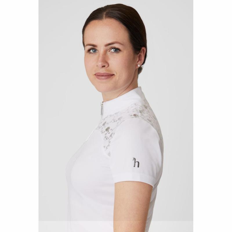 Koszulka firmy QHP. Wyposażona w brokatową obwódkę na wysokości klatki piersiowej. Zapinana na zamek błyskawiczny 1/4 w kolorze srebrnym z szpilką. Ozdobiona na lewej piersi szpilką Q-pin. Skład materiału: 91% poliester, 9% elastanMożna prać w pralce w temperaturze 30 stopni. Najlepiej nie używać płynu do zmiękczania tkanin i nie suszyć w suszarce bębnowej.