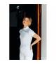 Top Anky wykonany z oddychającej prążkowanej tkaniny. Kryształki na lewej przedniej części bluzki. Rozmieszczenie prążków w różnych kierunkachMateriały: 75% nylonu, 25% spandexu.