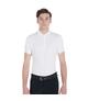 Koszulka konkursowa młodzieżowa z krótkim rękawkiem z firmy Equestro. Wykonana z technicznego, mikroperforowanego materiału, który zapewni konfort w upalne dni. Materiał sprawia, że koszulka bardzo szybko wysycha oraz chroni przed promieniowaniem UV. Rękawki zakończone gumką, a kołnierzyk wykonany z bawełny.