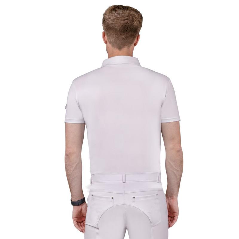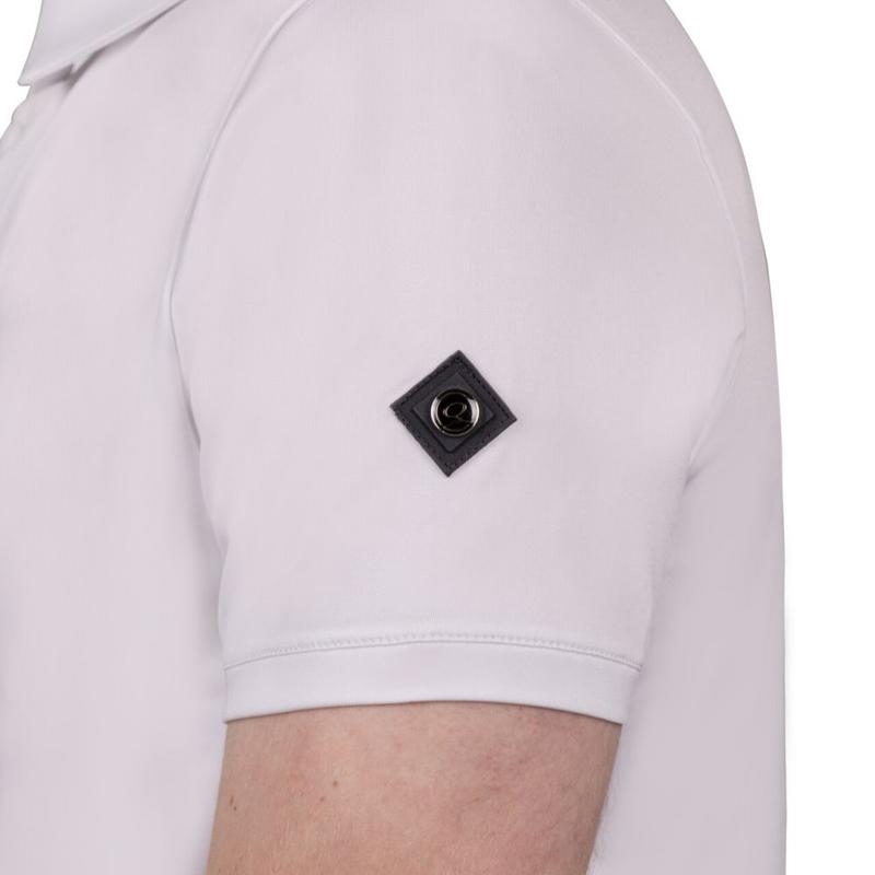 Koszulka konkursowa firmy QHP. Zapinana na guziki z przodu. Wyposażona w pętelkę, w którą można włożyć krawat, dzięki czemu krawat pozostaje na swoim miejscu.