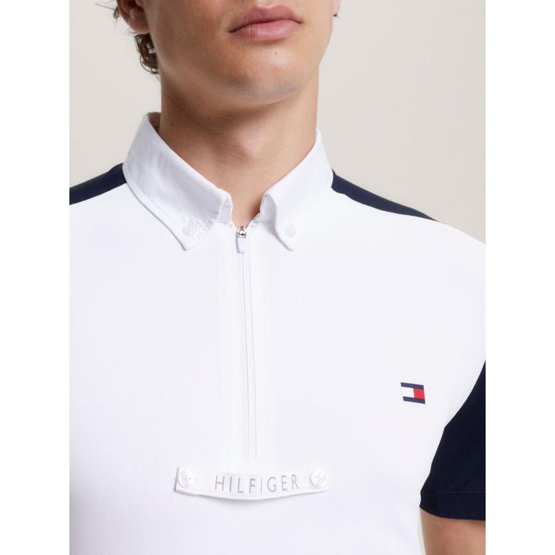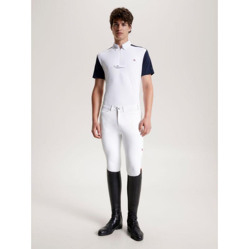 Koszulka konkursowa męska Fresh Air z krótkim rękawem z firmy Tommy Hilfiger Equestrian. Wykonana z szybkoschnącej, pochłaniającej zapachy tkaniny. Materiał o współczynniku ochrony przed promieniowaniem UV 50+. Wyszywane logo w formie flagi w formie flagi na lewej piersi. Rozmiar logo zgodny z przepisami FEI.