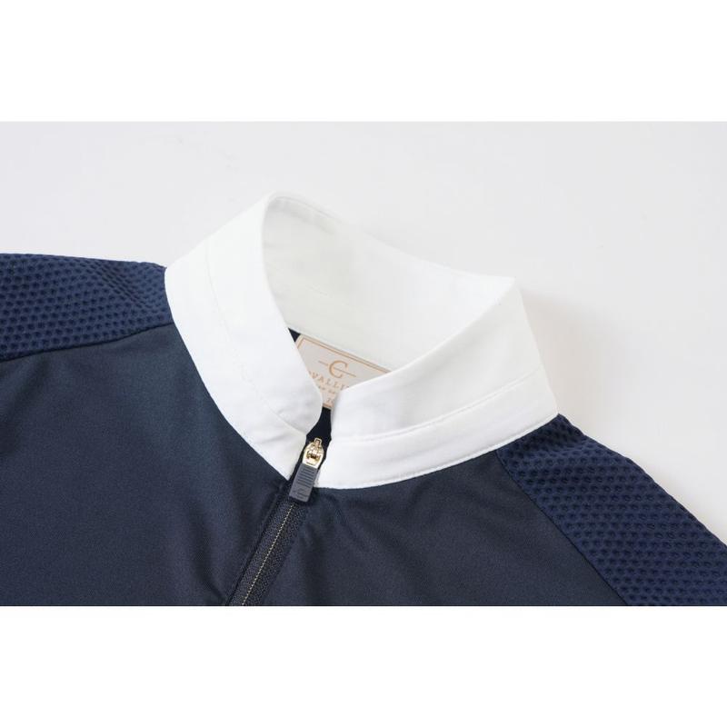 Nasza koszulka konkursowa łączy w sobie sportowe osiągi ze stylowym wzornictwem. Oddychający, elastyczny materiał zapewnia optymalny komfort noszenia i maksymalną swobodę ruchów w siodle. Dopasowany krój podkreśla sylwetkę. Stójka z zamkiem błyskawicznym