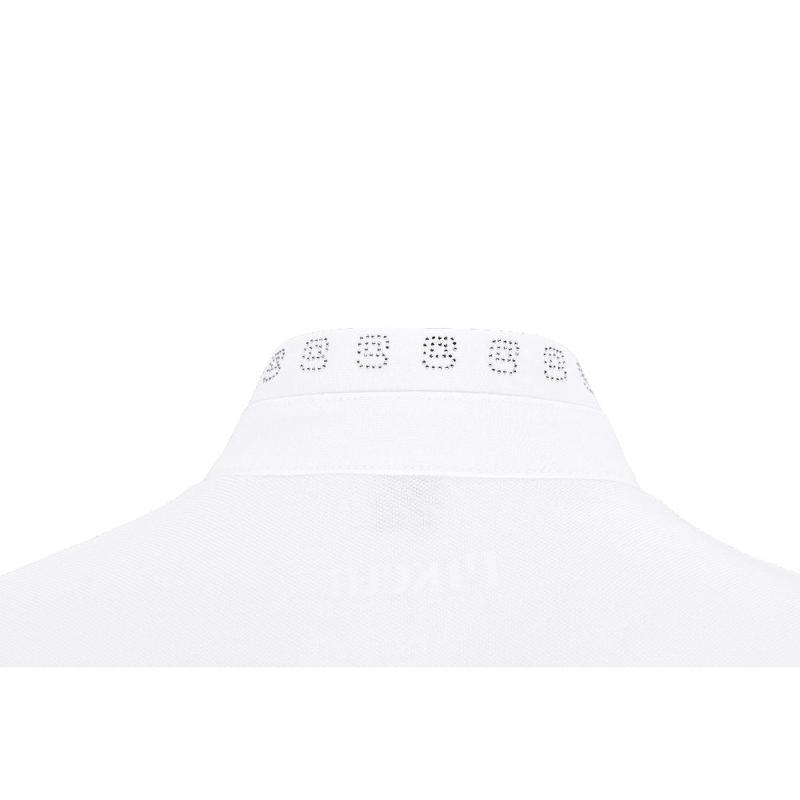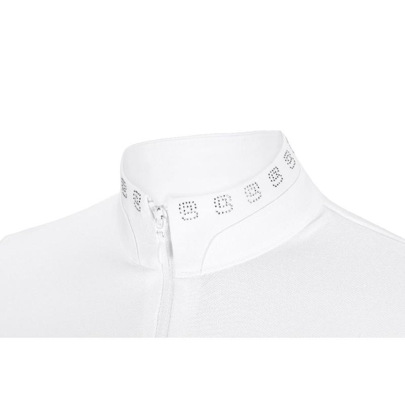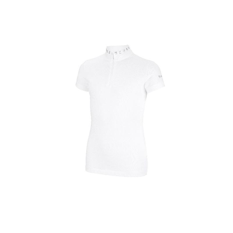Koszulka konkursowa młodzieżowa firmy Pikeur z kolekcji wiosna-lato 2024. Z elegancką stójką, delikatnie ozdobioną rzędem cyrkonii. Zapinana z przodu na zamek błyskwiczny. Wykonana z lekkiego, przewiewnego materiału.