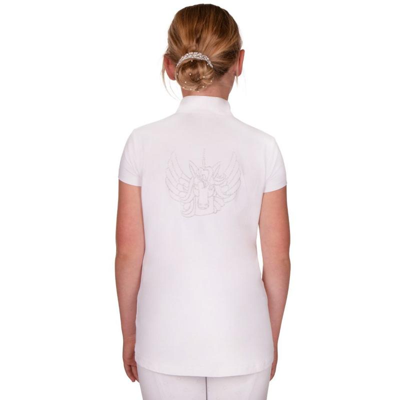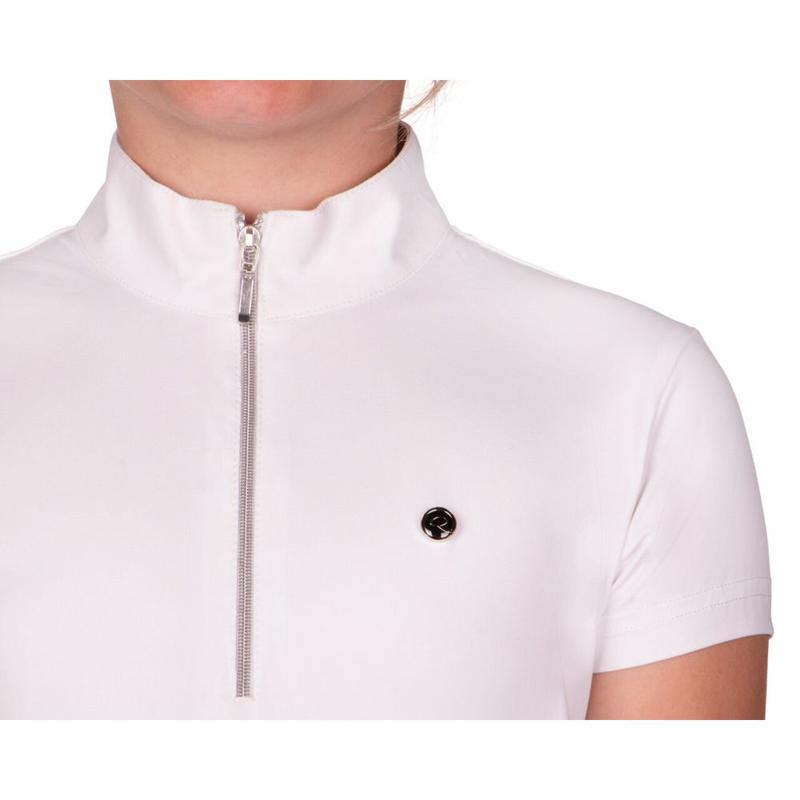 Koszulka konkursowa młodzieżowa firmy Pikeur z kolekcji wiosna-lato 2024. Z elegancką stójką, delikatnie ozdobioną rzędem cyrkonii. Zapinana z przodu na zamek błyskwiczny. Wykonana z lekkiego, przewiewnego materiału. Materiał: 55% bawełna, 45% poliester.