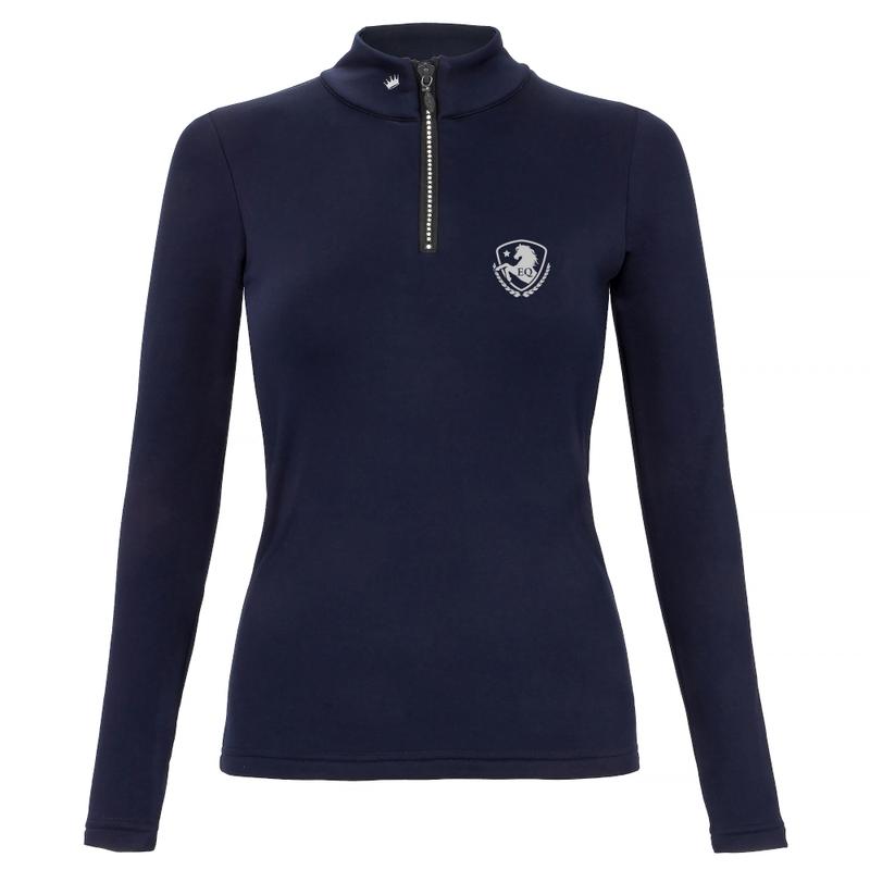 Koszulka firmy QHP. Wyposażona w brokatową obwódkę na wysokości klatki piersiowej. Zapinana na zamek błyskawiczny 1/4 w kolorze srebrnym z szpilką. Ozdobiona na lewej piersi szpilką Q-pin. Skład materiału: 91% poliester, 9% elastanMożna prać w pralce w temperaturze 30 stopni. Najlepiej nie używać płynu do zmiękczania tkanin i nie suszyć w suszarce bębnowej.