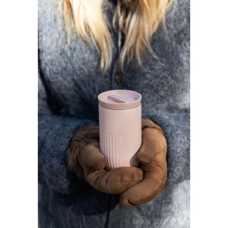 Kubek termiczny firmy Sagaform we współpracy z firmą Hoorsy. Podwójne ścianki, izolowane próżniowo kubki Tova mają wysokiej jakości cienką warstwę miedzi na zewnętrznej stronie wewnętrznej ścianki, co zapewnia lepszą izolację, która utrzymuje temperaturę. Ceramika wewnątrz i możliwość picia z kubka 360 stopni wzmacniają wrażenie napoju i tworzą idealne wrażenia podczas picia. Stylowy, malowany proszkowo wygląd Tova jest formowany z odzyskanej stali nierdzewnej bez szwów i ozdobiony charakterystycznym paskiem Saga. Kubek jest łatwy do rozłożenia i czyszczenia, co sprawia, że ​​nadaje się również do napojów, takich jak koktajle. Można myć w zmywarce. Szczelny. Utrzymuje zimno przez 8 godzin, a ciepło przez 4 godziny. Mieści 320ml