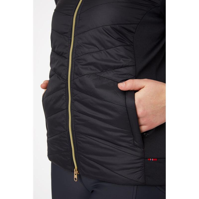 Kurtka wiosenno-jesienna firmy Pikeur. Hybryda oznacza połącznie materiałów, w tym przypadku elastycznej pianki, która znacząco poprawia swobodę ruchów i wygodę, oraz elementów lekko docieplonych techniczną watą, która także posiada właściwości odprowadzające wilgoć na zewnątrz. Kaptur jest odpinany. Materiał :100% poliamid.Funkcje oddychające materiałów...