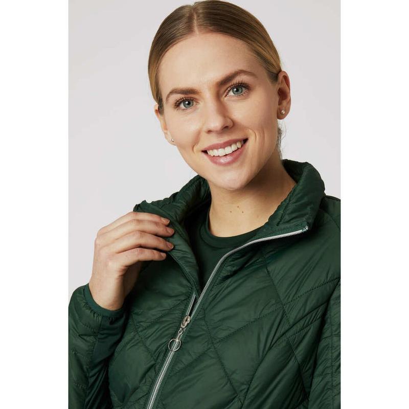 Kurtka wiosenno-jesienna damska Elena firmy Horze. Idealna na przejściowe pory roku i chłodne poranki. Kurtka posiada lekkie wypełnienie zapewniające komfortowe ciepło bez ryzyka przegrzania się. Taliowana, świetnie podkreśla sylwetkę. Kurtka wyposażona jest w dwukierunkowy zamek błyskawiczny oraz dwie kieszenie zapinane na suwak. Sprawdzi się w sezonie od wiosny do jesieni. Wypełnienie: 100% poliester. Prać w pralce w temp. 30 stopni.Wodoodporna, wiatroszczelna, lekko ocieplana.