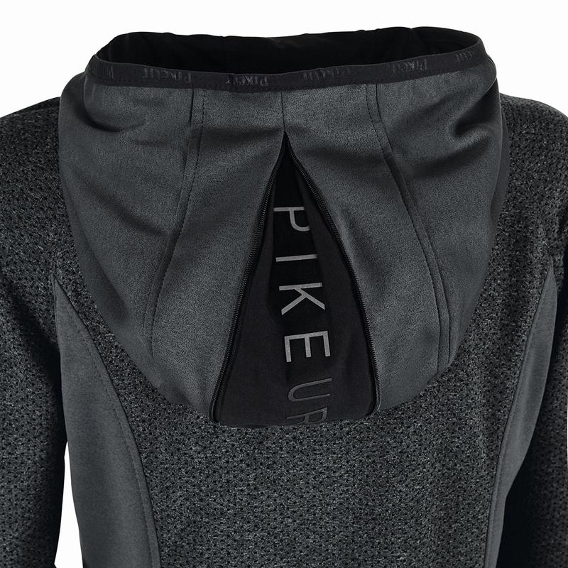 Bardzo techniczny, lekko dziurkowany materiał 3D to zarówno optyczna jak i praktyczna zaleta tej kurtki. Idealnie sprawdzi się na sezon wiosenno-jesienny. Nie posiada ocieplenia. Sprawdzi się doskonale jako model na halę lub na trening w chłodniejszy poranek. Hella jest lekka, elastyczna i oddychająca. Po intensywnym treningu szybko odda wilgoć na zewnątrz. Kurtka ma bardzo fajny detal na kapturze. Pod zamkiem ukryta jest kontrastowa wstawka z napisem Pikeur.