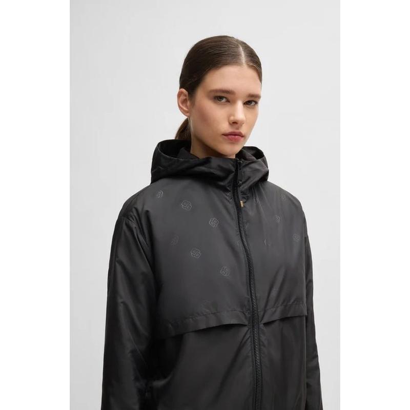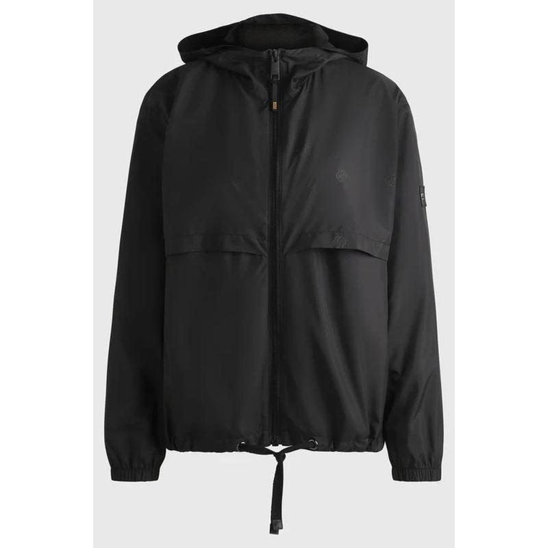 Kurtka przeciwdeszczowa z zakładkami z tyłu. Górna część kurtki z kapturem jest ozdobiona tonalnym nadrukiem z nowym logo Double B i podkreśla nowoczesność. Kurtka posiada kieszenie boczne, zamek błyskawiczny z przodu oraz wiązania u dołu, które umożliwiają zmianę kształtu i szerokości kurtki. Kaptur posiada regulację.