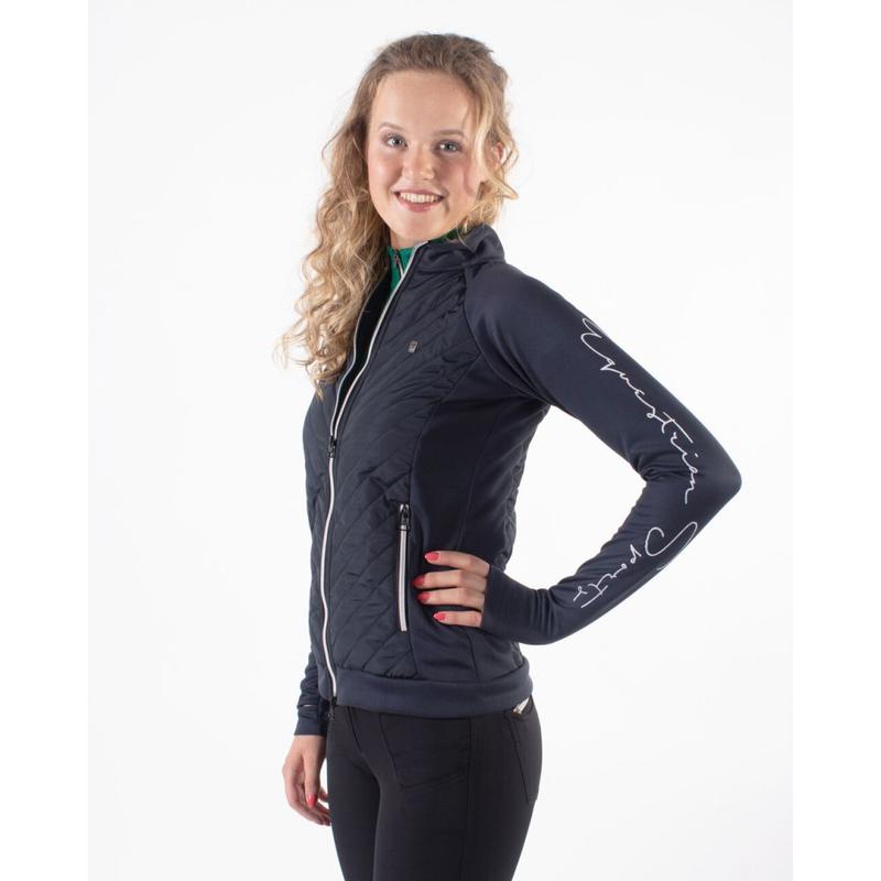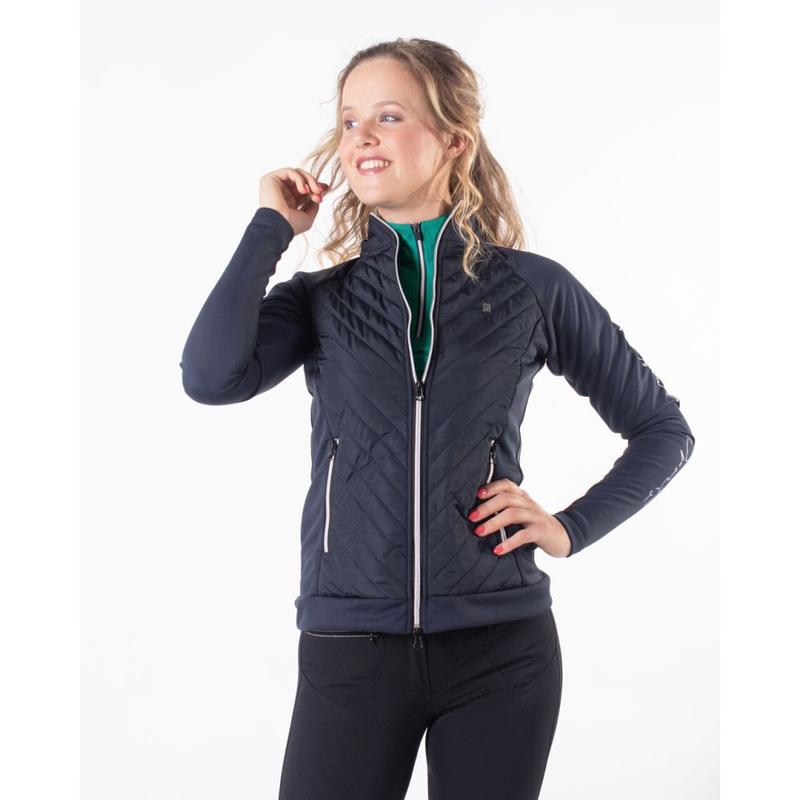 Reny Style to damska kurtka z dzianiny łączonej, która łączy sportową elegancję z wyjątkowym komfortem. Jej miękkie, aksamitne wnętrze zapewnia przytulność – idealna na chłodniejsze dni w stajni lub w podróży. Wygodne szwy podkreślają kobiecą sylwetkę, a dwukierunkowy zamek błyskawiczny zapewnia swobodę ruchów.Dwie kieszenie zapinane na zamek umożliwiają...