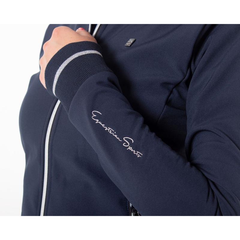 Kurtka damska z firmy QHP to wiosenno-jesienna dopasowana kurtka bez ocieplenia, wykonana z lekkiego materiału softshell ze srebrnymi detalami. Wnętrze kurtki wykonane jest z polaru, idealne na chłodniejsze letnie dni. Kurtka jest wodoodporna, oddychająca i wiatroszczelna. Dół i rękawy posiadają gumkę, dzięki czemu kurtka ładnie się układa. Przez gumkę przeszyty jest srebrny pasek, który jest dopasowany do srebrnych zamków i haftu. Lewy rękaw zdobiony srebrnym haftem, na lewej piersi metalowa naszywka QHP.