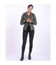 Kurtka damska z firmy QHP to wiosenno-jesienna dopasowana kurtka bez ocieplenia, wykonana z lekkiego materiału softshell ze srebrnymi detalami. Wnętrze kurtki wykonane jest z polaru, idealne na chłodniejsze letnie dni. Kurtka jest wodoodporna, oddychająca i wiatroszczelna. Dół i rękawy posiadają gumkę, dzięki czemu kurtka ładnie się układa. Przez gumkę przeszyty jest srebrny pasek, który jest dopasowany do srebrnych zamków i haftu. Lewy rękaw zdobiony srebrnym haftem, na lewej piersi metalowa naszywka QHP.