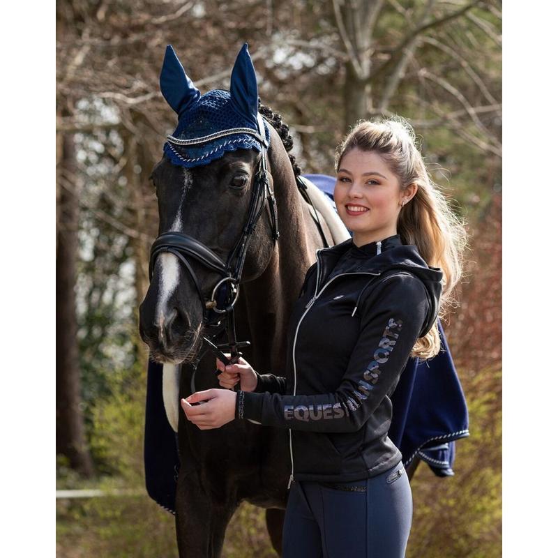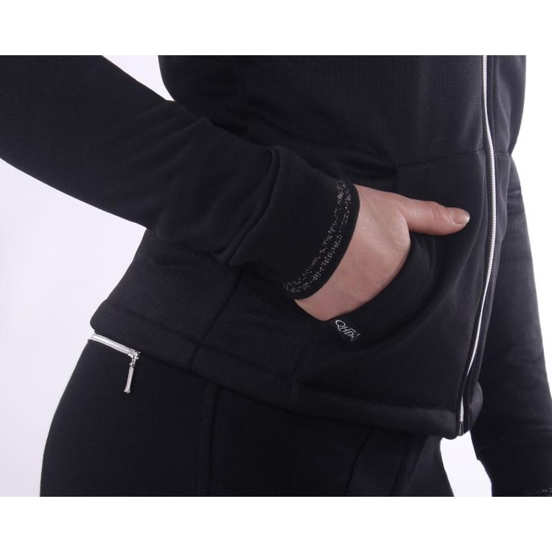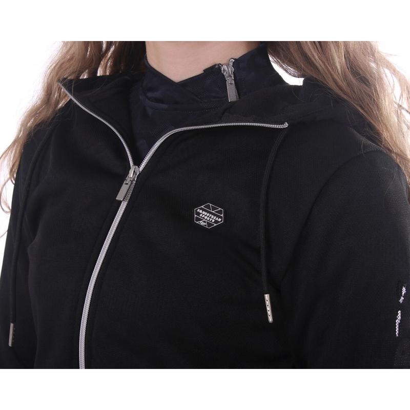 Bluza damska ocieplana firmy Pikeur z kolekcji jesień-zima 2025/2026. Środek podszyty polarem. 2-kierunkowy zamek błyskawiczny. Kaptur regulowany wokół twarzy za pomocą elastycznego sznurka i stopera. System zatrzasku magnetycznego na kapturze.Materiał: 80% poliester, 20% elastan.