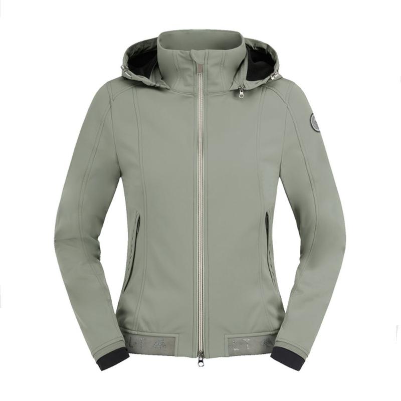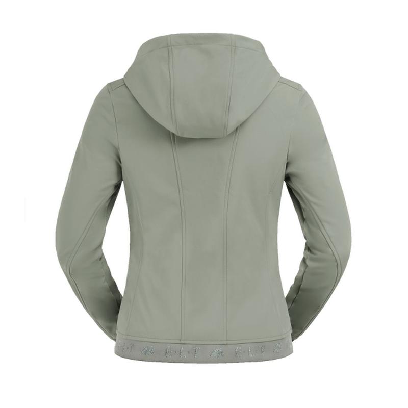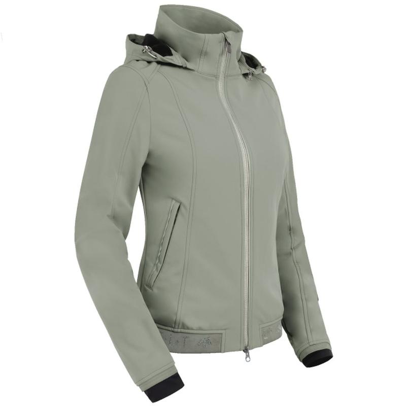 Kurtka damska softshell wiosenno-jesienna firmy Waldhausen, z odpinanym kapturem. Dopasowany krój, wiatroszczelny i oddychający materiał. Wysoki kołnierz, elastyczne mankiety. Kurtka posiada dół z błyszczącą gumką z logo.
