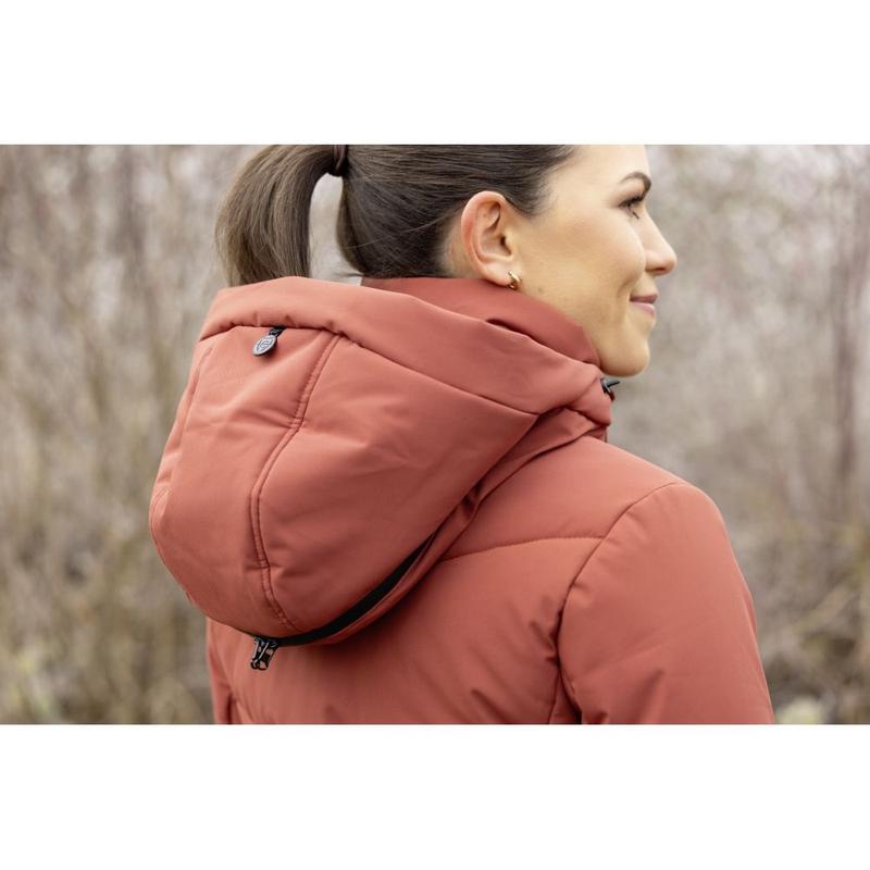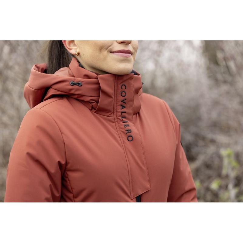 Płaszcz przeciwdeszczowy damski firmy Pikeur z kolekcji wiosna/lato 2026. Wykonany z lekkiego materału zewnętrznego, o błyszczacym wykończeniu. Wodoodporny i wiatroszczelny, z klejonymi szwami. Płaszcz o prostym kroju z regulowaną talią. Długość do kolan, 97 cm. Podszewka z cienkiej siateczki . Wodoodporny, dwukierunkowy zamek błyskawiczny z przodu, kryty...