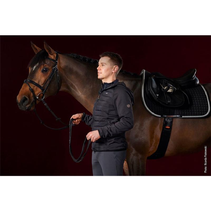 Kurtka męska Schockemoehle z kolekcji jesień/zima 2024. Idelanie sprawdzi się na trening w każdy chłodniejszy dzień. To lekka kurtka hybrydowa, która łączy ze sobą nowoczesny i sportowy design z funkcjonalnymi detalami. Pikowany przód i tył wypełniony
