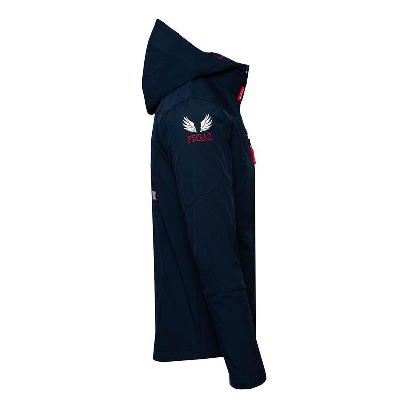 Kurtka firmy Pikeur. Wykonana z wysokiej jakości materiału softshell. Wyposażona w dwie kieszenie zapinane na suwak oraz kaptur.Materił: 95 PES, 5% EL.