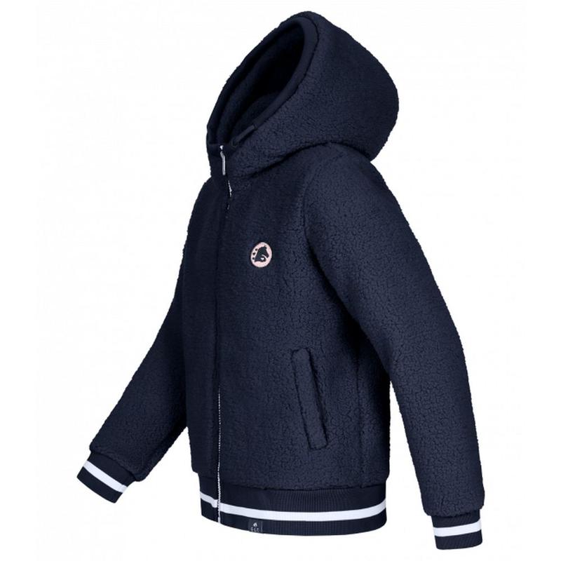 Młodzieżowa kurtka zimowa firmy Horze. Wyposażona w dwukierunkowy zamek błyskawiczny, odblaskowe paski na rękawach i karczku oraz odbijające swiatło brokatowe kropki na tkaninie w kolorze fioletowym. Dodatkowo posiada odpinany kaptur i regulowaną talię z tyłu.