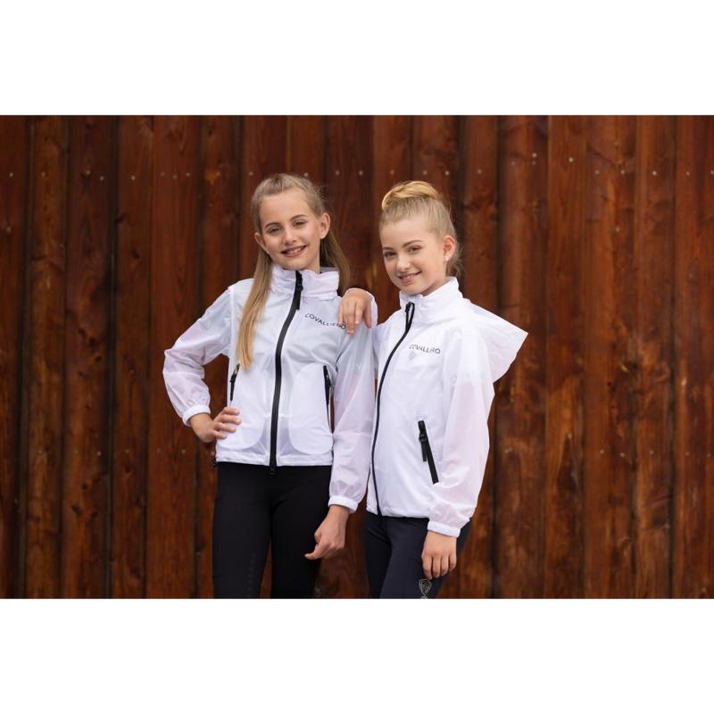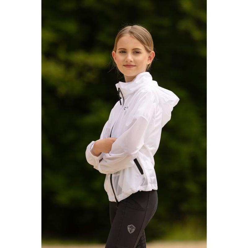 Kurtka przeciwdeszczowa firmy QHP. Wykonana z lekkiego, przezroczystego i wodoodpornego materiału. Zapinana z przodu na zamek błyskawiczny. Posiada kieszonkę zapinaną na zamek oraz otwory wentylacyjne pod pachami. Po lewej stronie ozdobiona symbolem QHP. Nadaje się do codziennej pracy w stajni jak i na zawody.