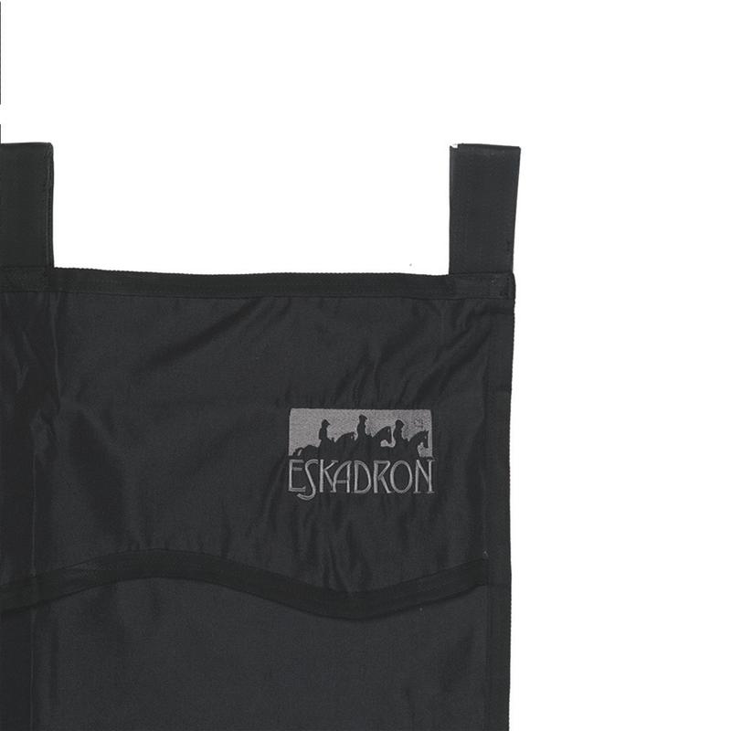 Blokada boksu z kolekcji Eskadron. Wykonana z solidnego materiału. Regulowana, zapinana na sześć zwykłych karabińczyków. Ozdobiona logiem Eskadron.