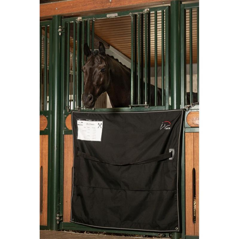 Kurtyna stajenna firmy HKM. Posiada proste mocowanie i przezroczyste okienko do wyświetlania informacji o koniu podczas pokazów. Idealny na turnieje z zakwaterowaniem konia w namiocie stajennym.