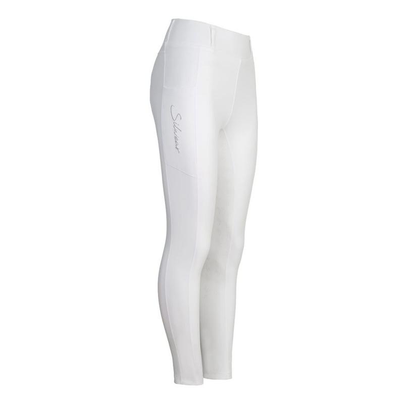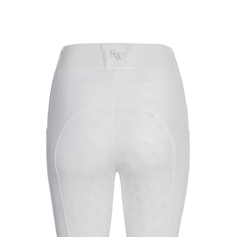 Dodatkowo legginsy wykonane są z materiału zapobiegającemu prześwitywaniu, jako jedne z nielicznych białych legginsów konkursowych na rynku.