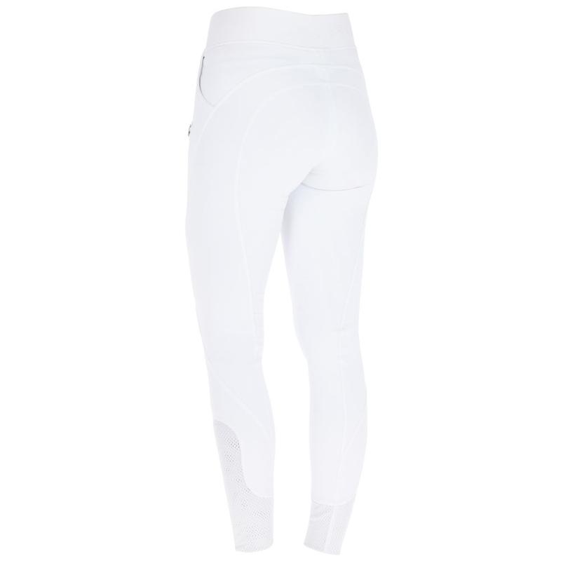 Superlekkie i cienkie legginsy jeździeckie, opracowane specjalnie z myślą o maksymalnym komforcie i optymalnej wydajności. Praktyczne kieszenie na telefon komórkowy po obu stronach zapewniają, że telefon jest zawsze pod ręką podczas jazdy. Leginsy są stabilne wymiarowo, miękkie i lekkie, co zapewnia przyjemne uczucie noszenia. Są wyjątkowo oddychające i gwarantują najlepszą możliwą cyrkulację powietrza podczas treningu. Dzięki pełnemu lejowi i 4-kierunkowemu rozciąganiu zapewniają pewne trzymanie w siodle i maksymalną elastyczność przy każdym ruchu.