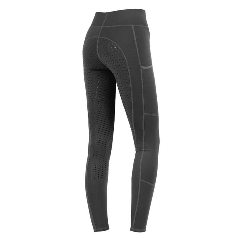 Klasyczne legginsy jeździeckie wykonane z miękkiego, gładkiego materiału. Legginsy z szerokim paskiem w pasie i pełnym silikonowym lejem. Posiadają elastyczny, syntetyczny i oddychający materiał oraz kieszeń na telefon komórkowy.