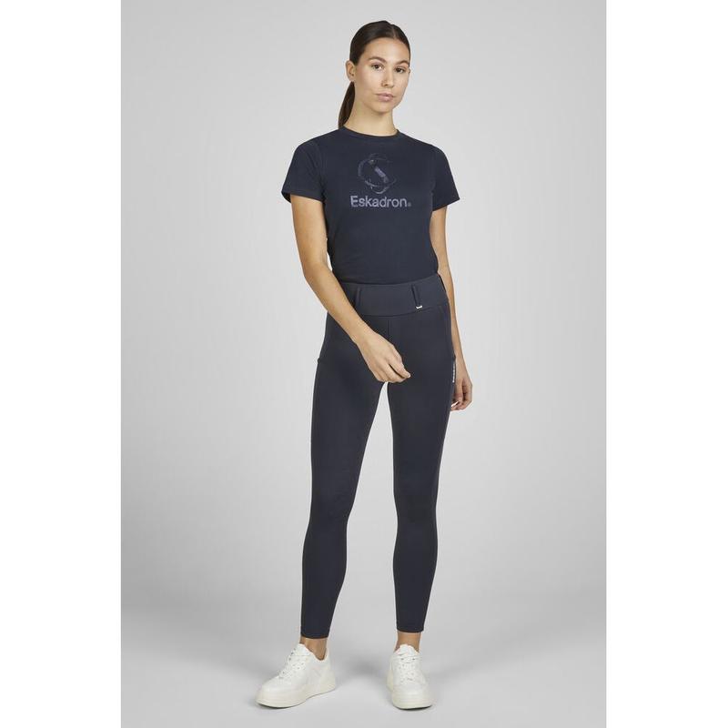 Legginsy z Kolekcji Eskadron Classic Sports 2025 - wykonane z nowej, elastycznej, rozciągliwej tkaniny. Legginsy posiadają dwie kieszenie na telefon. Modelujący pas zapewnia duży komfort podczas jazdy.