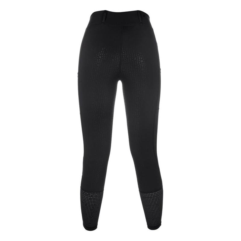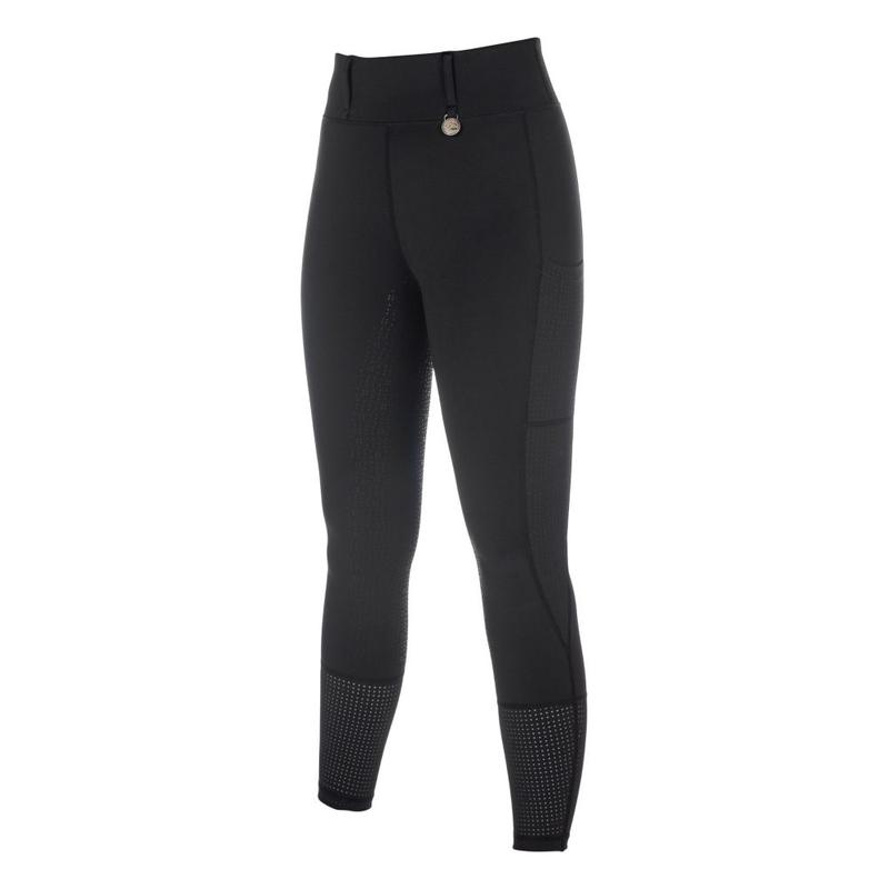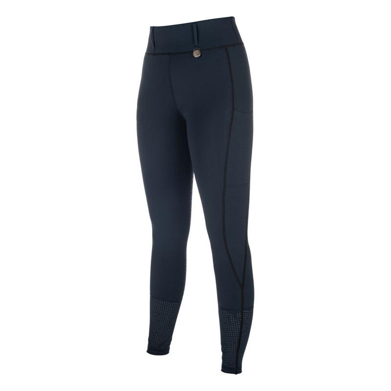 Leginsy jeździeckie Juna firmy HKM z pełnym silikonowym lejem zapewniają optymalne wsparcie w siodle i łączą funkcjonalność z eleganckim wzornictwem. Oddychający, dwuelastyczny materiał zapewnia wygodne dopasowanie, a wycinane laserowo wstawki zapewniają dodatkową przepuszczalność powietrza. Szlufki na pasek, boczna kieszeń na telefon komórkowy i dwie boczne kieszenie z rozcięciami sprawiają, że legginsy te są praktyczne i nadają się do codziennego noszenia. Stylowy wygląd całości dopełnia wysokiej jakości metalowa aplikacja.