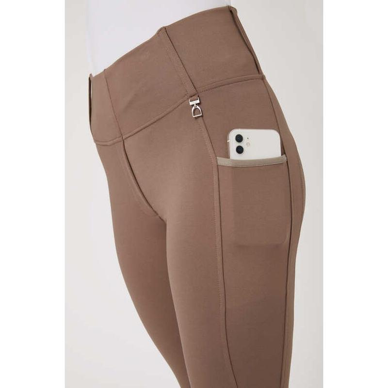 Legginsy damskie z silikonem Horze Lucinda z wysokim stanem ciemnobeżowe