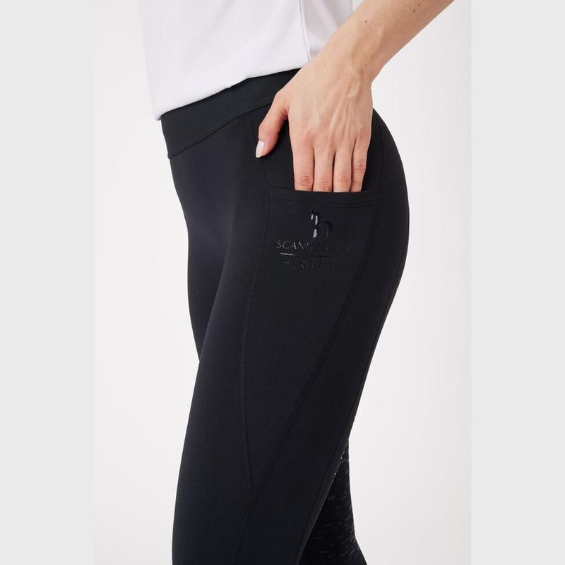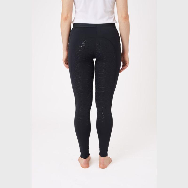 Miękka w dotyku czesana podszewka sprawia, że ten model to obowiązkowy element Twojej garderoby jeździeckiej na sezon przejściowy. Pełny lej silikonowy zapewnia znakomitą przyczepność do siodła. Wysoki stan jest wygodny, a przede wszystkim nie trzeba się obawiać, że legginsy zsuną się podczas jazdy. Kieszenie na udach, ozdobione silikonowym nadrukiem w kolorze tła, pomieszczą najpotrzebniejsze drobiazgi.