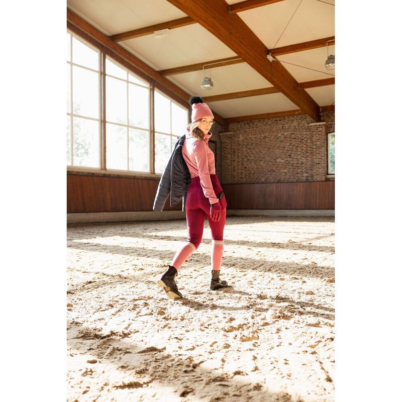 Legginsy damskie firmy Horze z pełnym lejem silikonowym. Wykonane z izolującego i oddychającego materiału. Komfortowe i elastyczne. Miękka szczotkowana wewnętrzna strona, pas z tkaniny zewnętrznej z szlufkami. Kieszeń na telefon na udach. Silikonowy nadruk z pełnym lejem. Długość nogawki wewnętrznej 70 cm we wszystkich rozmiarach.Opis techniczny:82 %...