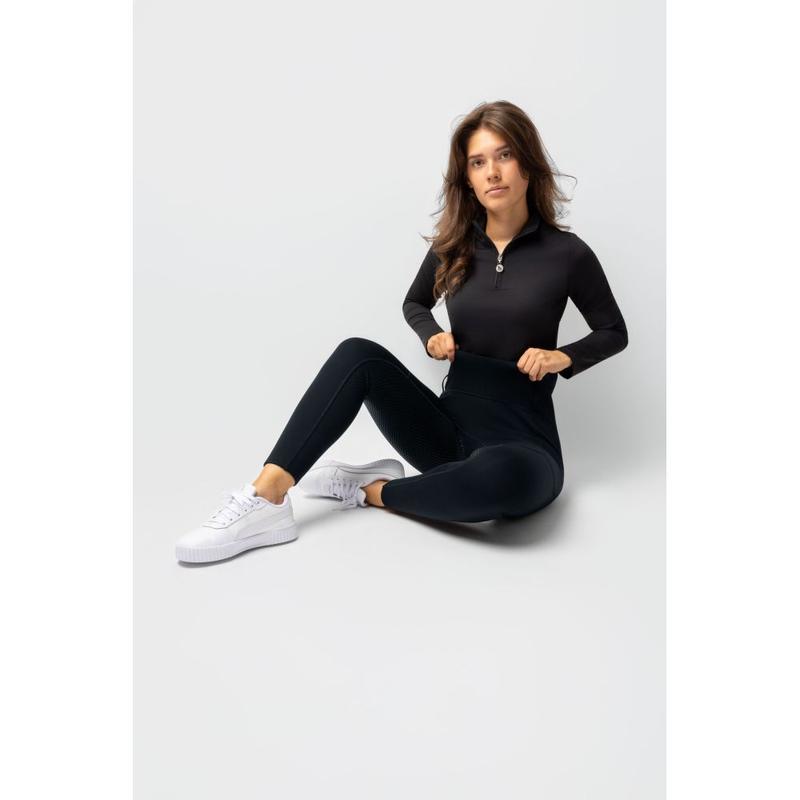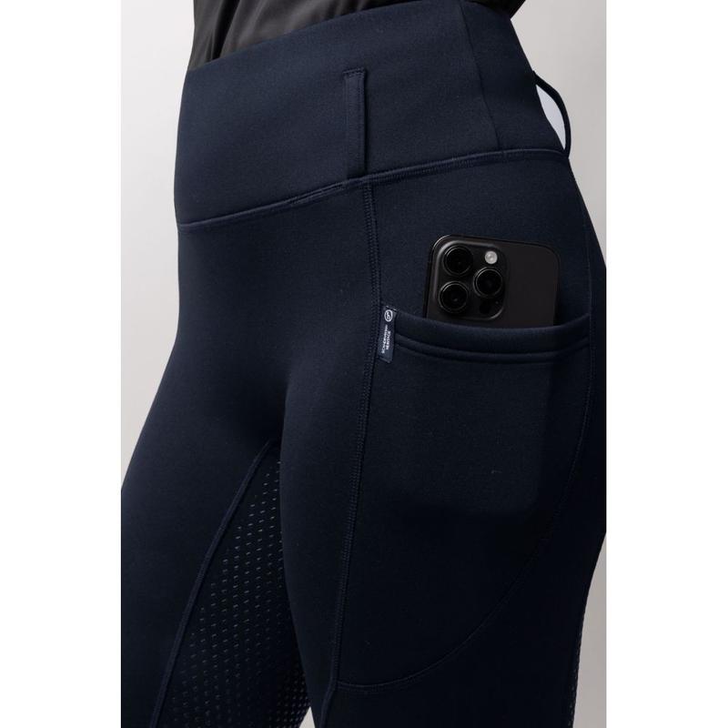 Legginsy młodzieżowe firmy Horze. Izolujące, oddychające, komfortowe i elastyczne. Wnętrze szczotkowane, szybkoschnące. Szeroki pas z pętlami na pasek, kieszeń na telefon na udach.Opis techniczny:75% poliester, 15% elastan.