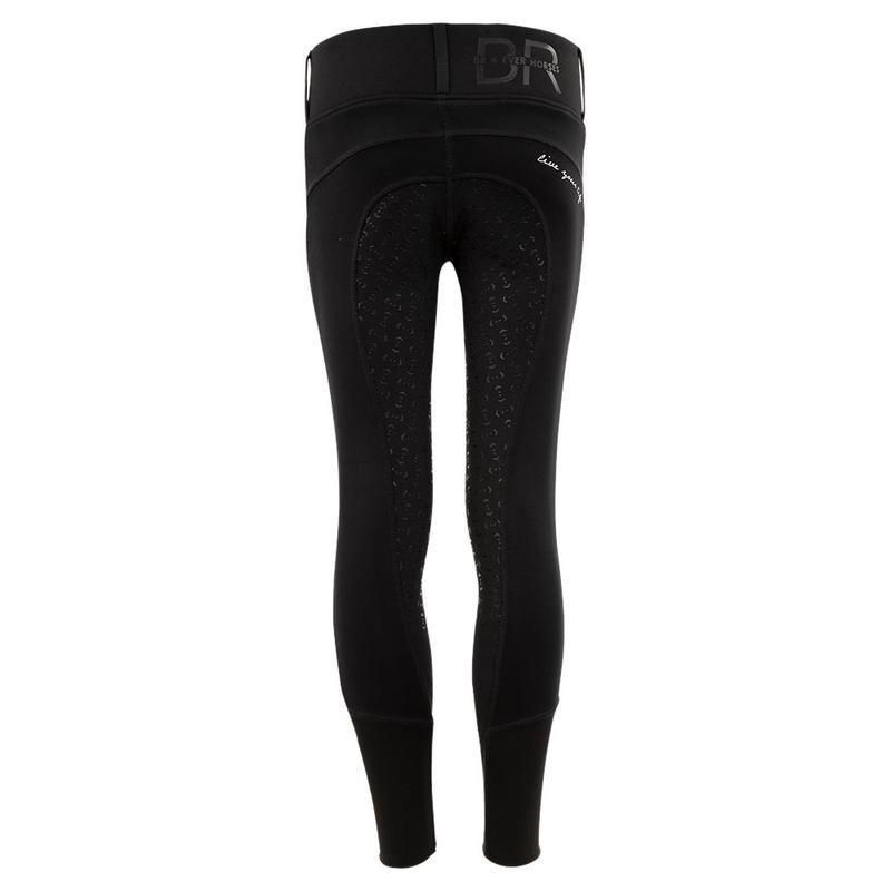 Legginsy młodzieżowe firmy BR. Oddychające i odprowadzające wilgoć, materiał elastyczny. Pas ozdobiony napisem, posiadają kieszenie na telefon komórkowy na bocznych nogach. Tył ozdobione srebrnymi nadrukami. Materiał: 90% poliester, 10% elastan