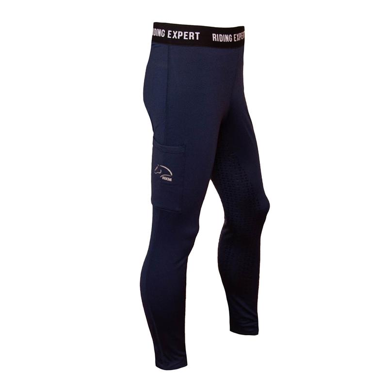 Leginsy jeździeckie firmy HKM. Wykonane z materiałubi-elastycznego. Wyposażone w boczną kieszonka na telefon komórkowy. Materiał: pełen lej silikonowy, 80% nylon, 20% elastanPrać w temp. 30 stopni, delikatne pranie