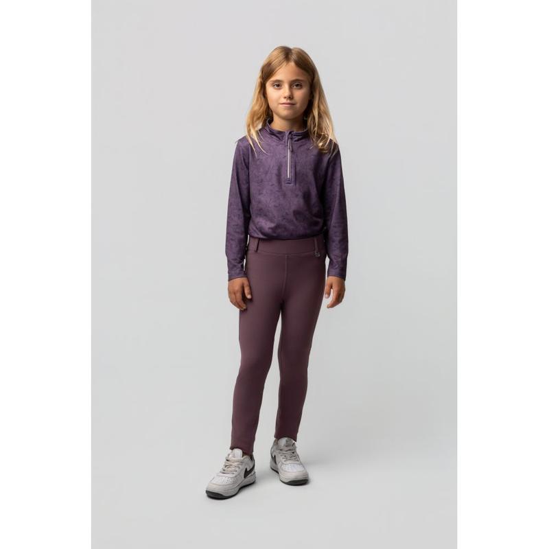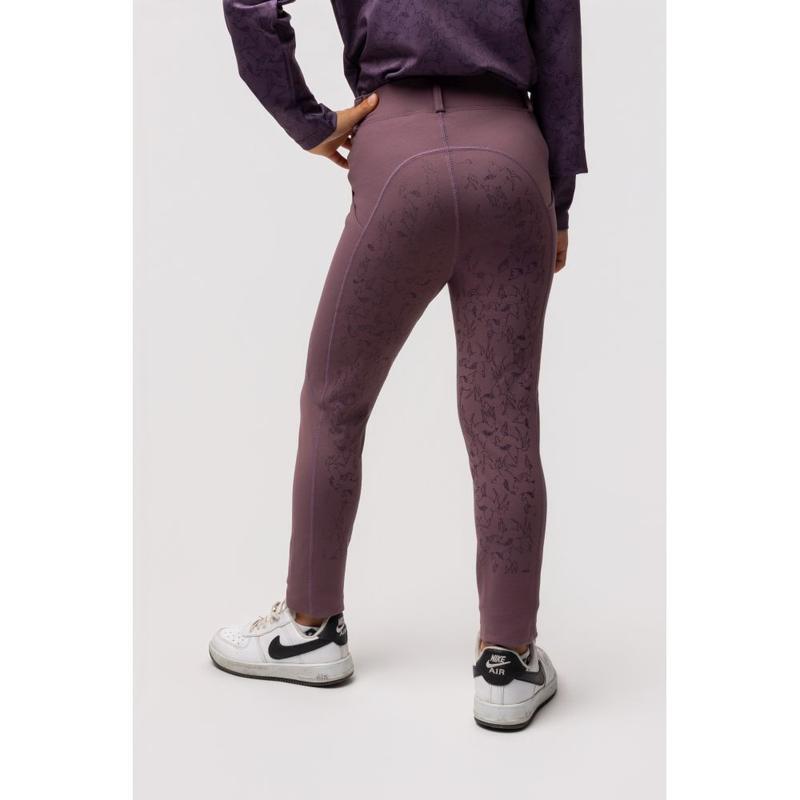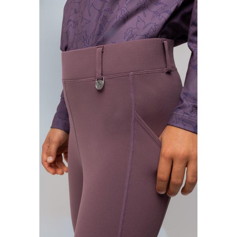 Legginsy młodzieżowe firmy Horze. Izolujące, oddychające, komfortowe i elastyczne. Silikonowy nadruk pełnego gripu na siedzeniu w designie jednorożca. Wnętrze szczotkowane, szybkoschnące. Szeroki pas z pętlami na pasek, kieszeń na telefon na udach.